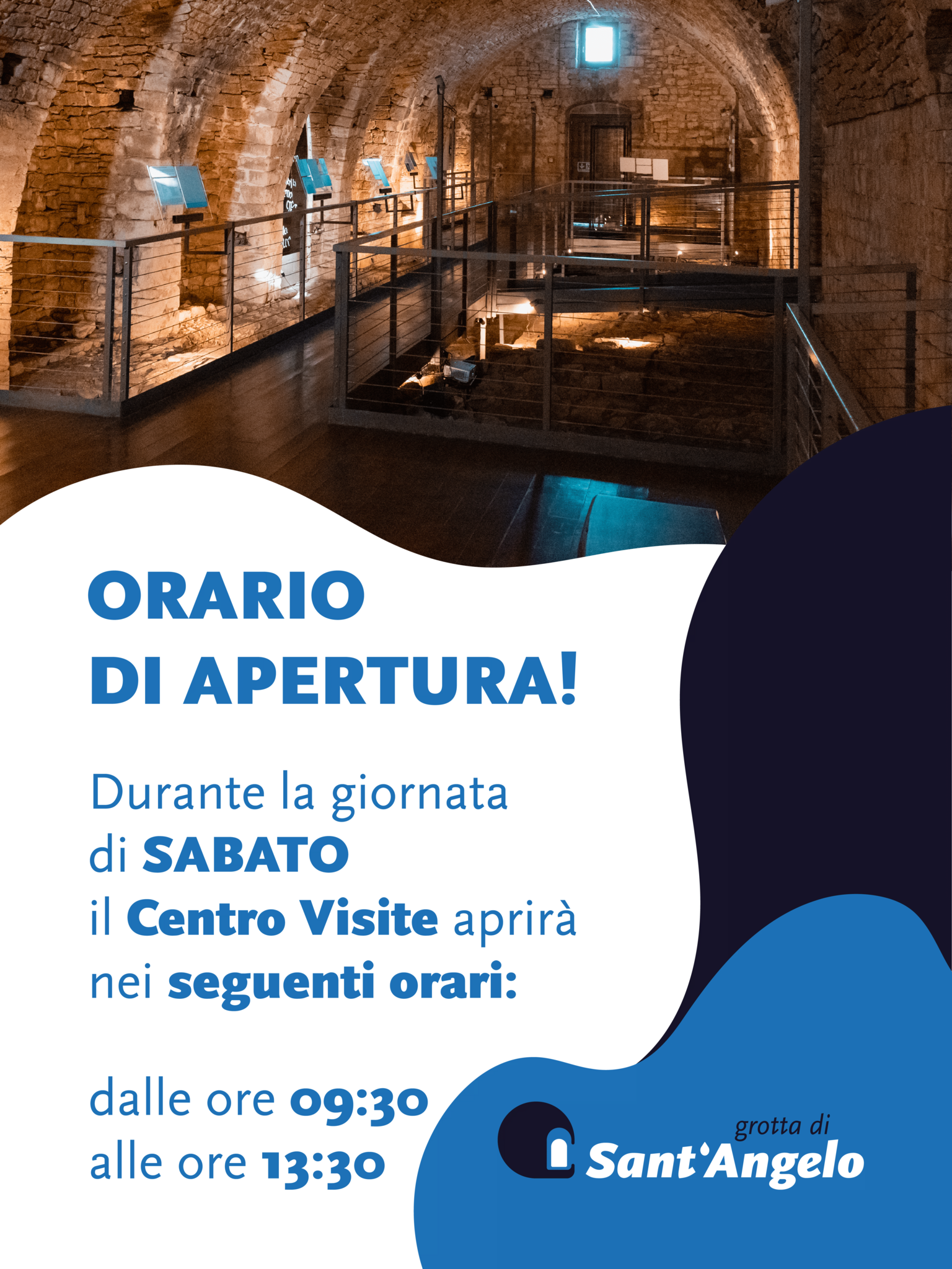 Sabato 9:30-13:30 Il Centro Visite della Grotta di Sant’Angelo è aperto ogni sabato. + Aggiungi a Google Calendar + iCal / Outlook export 00 giorni 00 ore 00 minuti 00 secondi Data 14 Febbraio 2026 Ora 9:30 - 13:30 Luogo Centro Visite della Grotta di Sant'Angelo Sito web http://www.grottadisantangelo.it Categoria Apertura regolare Organizzatore Archeoclub d'Italia APS "don Ignazio Fraccalvieri" Santeramo In Colle Email archeoclubsanteramo@hotmail.it Prossimo avvenimento Vai alla pagina necessaria Data 21 Feb 2026 Ora 9:30 - 13:30 Condividi questo evento